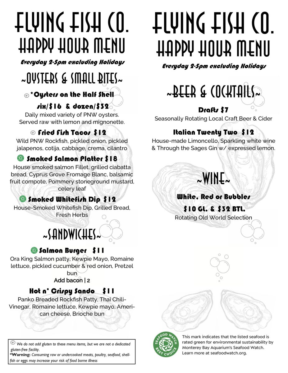 PLEASE NOTE: This website is updated once a week on Fridays and oyster varieties rotate quickly. For best results, just stop on in and check the oyster board.